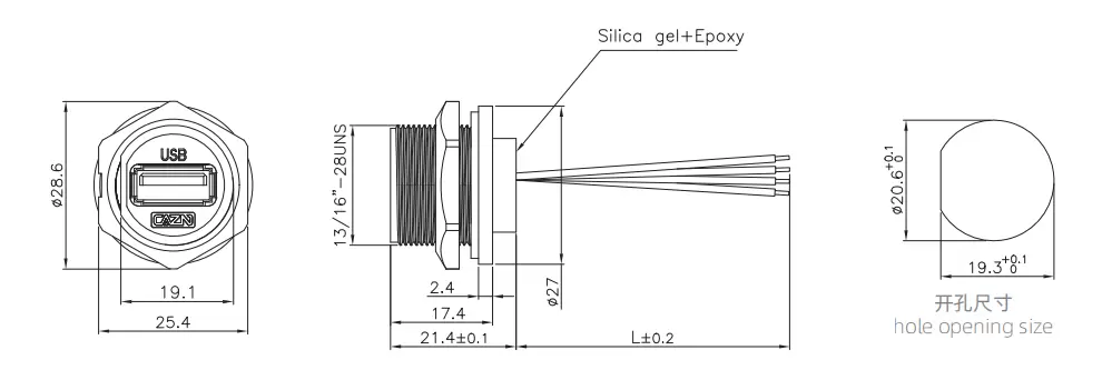 | Гнездо USB с задним креплением, с проводом (резьбовое) | USB3.0 | E13T-FU3-PWF-0.2PV |