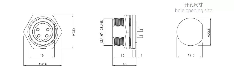 | Гнездо E13 с задним креплением (резьбовое) | 300В | 20А | E13T-S3B-PWF | 3Б | ||