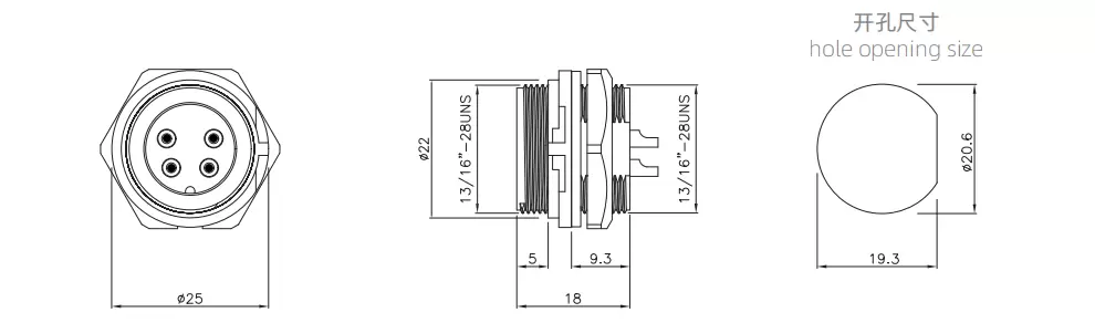 | Штекерный разъем E13 с передним креплением (резьбовой) | 300В | 20А | E13T-P4B-PWB | 4Б | ||