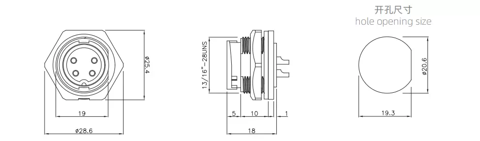 | Гнездо E13 с задним креплением ( байонетное ) | 30В | 2А | E13B-S18-PWF | 18 | ||