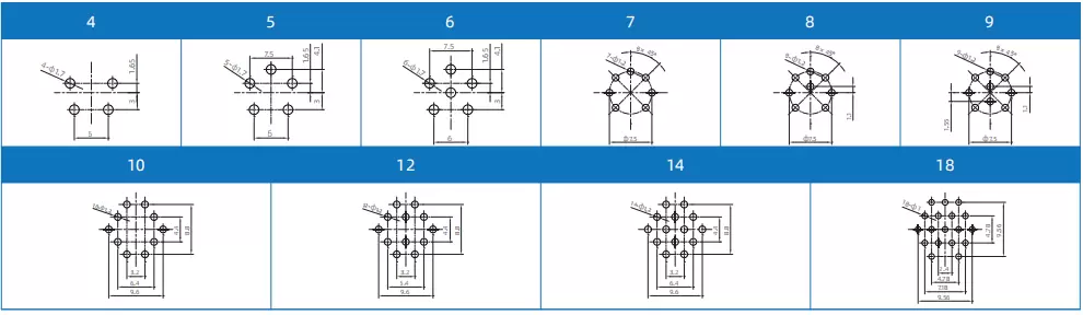 Количество ядер : 2, 3, 4, 5, 6, 7, 8, 9, 10, 12, 14, 18 контактов